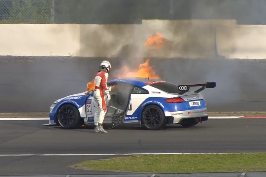 Marshall was tied in the points with Lappalainen before today’s race, but Marschall was involved into the opening-lap crash and with damaged car he has to be happy to finish the race. Sheldon van der Linde, who was third in the standings before the race, wasn’t so lucky, because his #31 Audi was caught by fire and he had to retired from the race. Emil Lindholm and Christoph Hofbauer also retired after a crash on Lap 1, which caused the red flag.