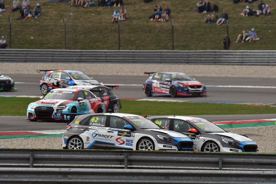 In Saturday’s Race 1, Daniel Nagy scored his maiden TCR Europe victory in the #999 M1RA Hyundai i30 N TCR, thanks to great overtaking manoeuvre against Jean-Karl Vernay in Leopard Lukoil Team WRT’s Audi RS3 LMS. Kris Richard finished third in Target Competition’s Hyundai. Dušan Borković started from P10 in the #62 Hyundai i30 N TCR of Target Competition, dropped to P12 and then recovered to finish in the sixth place, taking the series lead over Mikel Azcona who was ninth in the #25 Cupra TCR of PCR Sport.